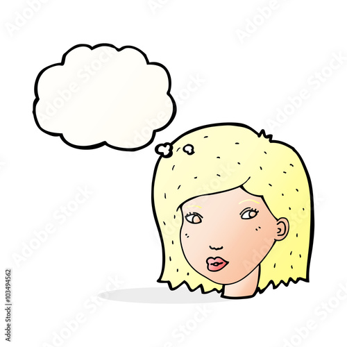 Obraz premium cartoon female face with thought bubble