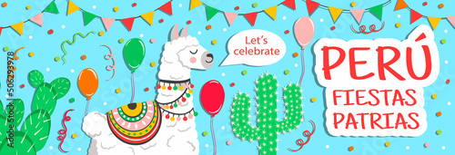 © Vika92, Fototapeta premium Cartoon fiestas patrias peru banner. July 28 celebration