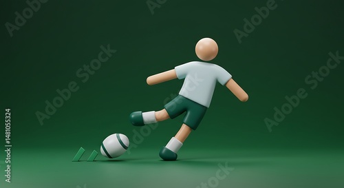 © Fajar, Fototapeta premium Cartoon Figure Kicking Ball Sport Action on Green Background