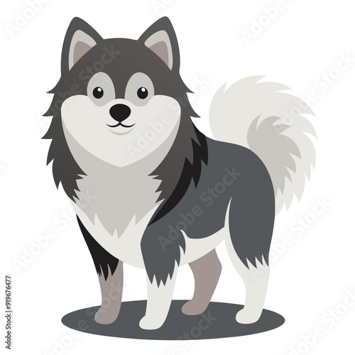 Obraz premium cartoon Finnish Lapphund dog standing, fluffy fur, alert expression