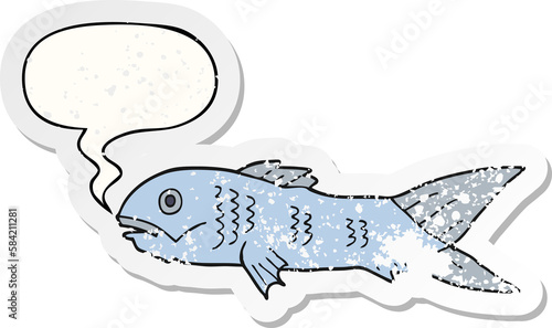 Fototapeta premium cartoon fish and speech bubble distressed sticker