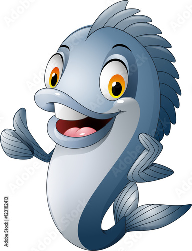 © ekyaky, Naklejka premium Cartoon fish giving thumb up