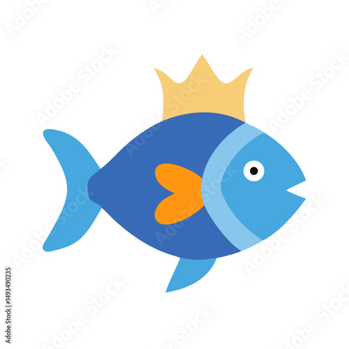 © Sharuzzaman, Obraz premium Cartoon fish with crown in flat vector style