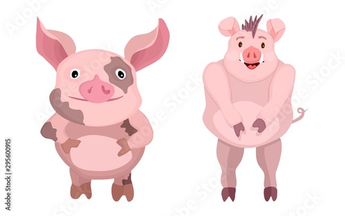 Fototapeta premium cartoon flat characters. pink bright pigs