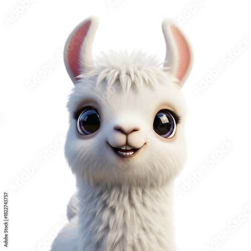 © Rehana, Naklejka premium cartoon fluffy white llama, big purple eyes and a happy smile, isolated on a white or transparent background, cutout, PNG