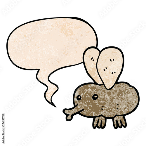 Fototapeta premium cartoon fly and speech bubble in retro texture style