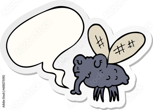 Obraz premium cartoon fly with speech bubble sticker