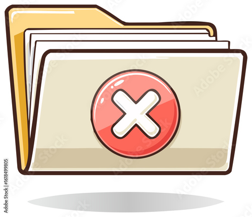 © Катя О, Obraz premium Cartoon folder icon with a red circle and white cross symbol for rejection or error