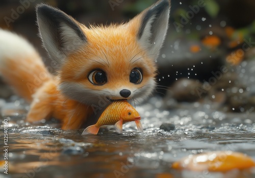 © Andreas, Fototapeta premium Cartoon fox catching fish.