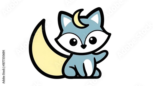 Obraz premium Cartoon Fox Character with Crescent Moon.