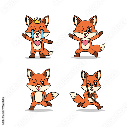 Obraz premium Cartoon Fox Characters Showing Different Emotions and Actions