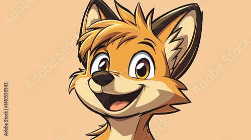 Obraz premium Cartoon Fox Portrait, Happy Expression, Against Plain Background, Possible...