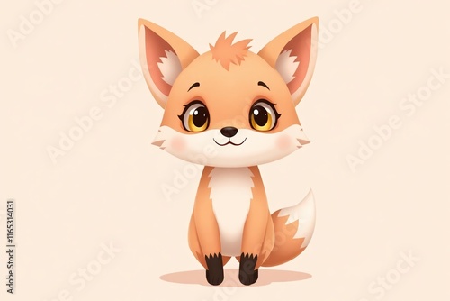 © haiqiang, Obraz premium cartoon fox sitting on the ground with a white background