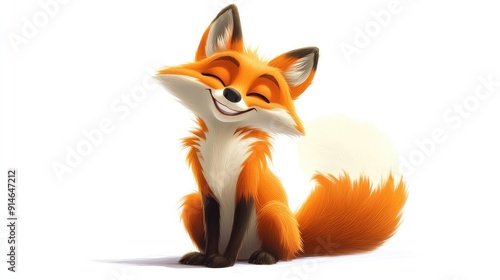© Napasnan, Fototapeta premium Cartoon fox smiling with a bushy tail on a white background