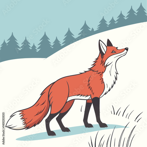 Obraz premium Cartoon Fox Vector For Winter Design Projects