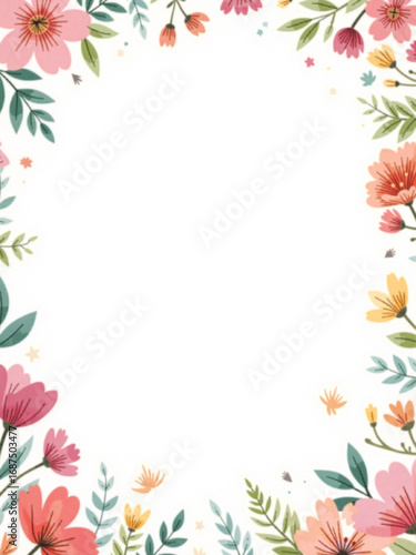 © Ethan, Fototapeta premium cartoon frame with flowers and leaves