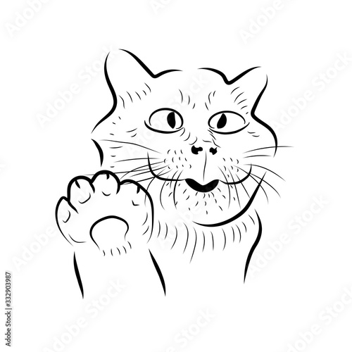 © yik2007, Obraz premium Cartoon friendly cat. Sketch style.