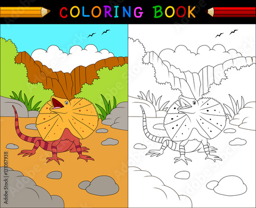 © ekyaky, Fototapeta premium Cartoon frilled lizard coloring book, Australian animals series