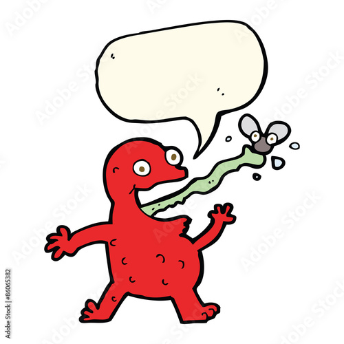 © lineartestpilot, Obraz premium cartoon frog catching fly with speech bubble