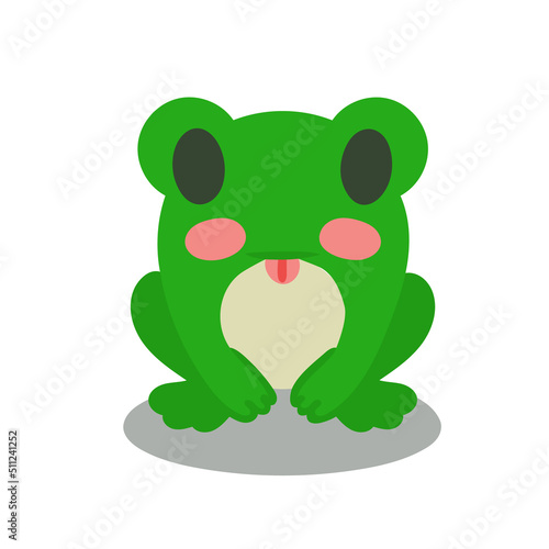 Obraz premium Cartoon frog shows tongue. Vector illustration. Frog isolated on white...