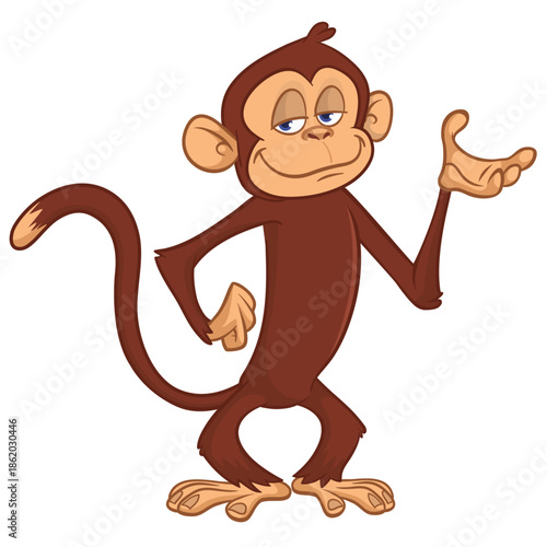 Fototapeta premium Cartoon funny brown monkey chimpanzee standing. Vector illustration isolated...