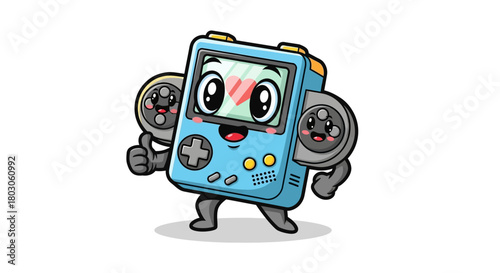 Fototapeta premium Cartoon Game Console Character with Heart Eyes and Controller Arms