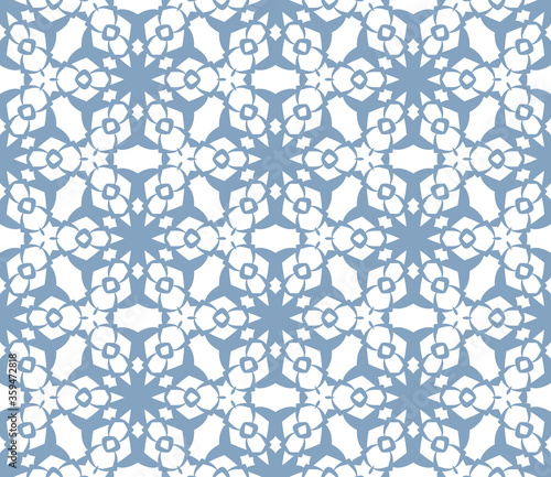 © _aine_, Fototapeta premium Cartoon geo seamless pattern. Infinity geometric background in flat style. Tiled wrapping paper, mosaic cover, card. Vector illustration.