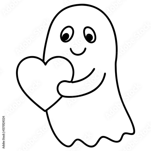 © Jamila, Fototapeta premium Cartoon ghost holding a heart line art vector illustration
