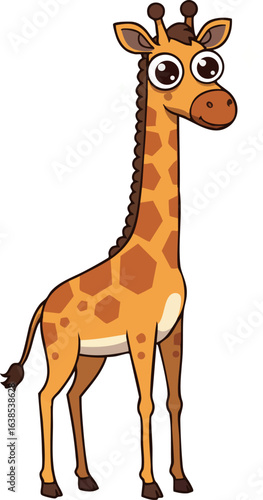 © DesignVectX, Naklejka premium Cartoon giraffe with big eyes standing isolated vector illustration