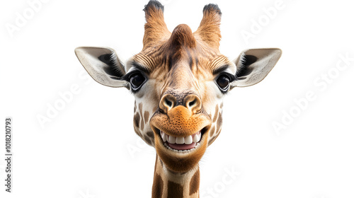 © Anna, Naklejka premium Cartoon Giraffe with Raised Eyebrows and Big Toothless Smile in CGI Style