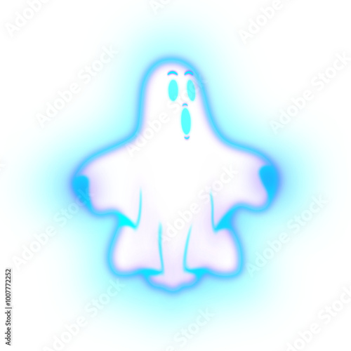 © Juanpa Duque, Fototapeta premium Cartoon glowing ghost with black background