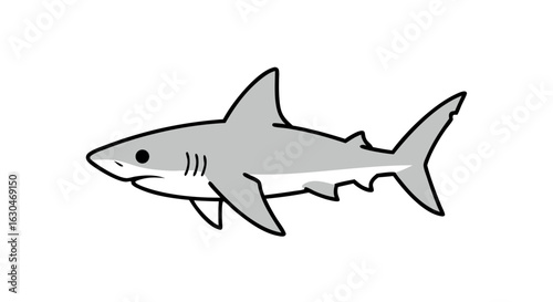 Obraz premium Cartoon Great White Shark Illustration on a Clean White Backdrop Depicting Aquatic Marine Animal in a Simplified Style Suitable for Childrens Books