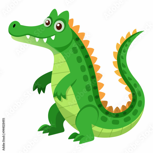 Fototapeta premium Cartoon Green Crocodile with Orange Spikes and Large Eyes