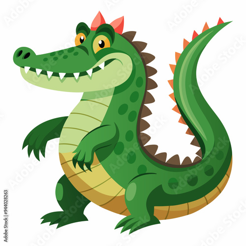 © Rizaldi, Obraz premium Cartoon Green Crocodile with Red Spikes and Sharp Teeth
