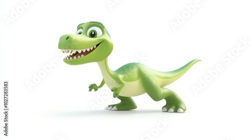 Fototapeta premium Cartoon Green Dinosaur with Big Smile and White Teeth