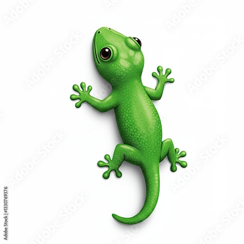 © IbragimovN, Obraz premium Cartoon green gecko on white background with cute features and playful pose