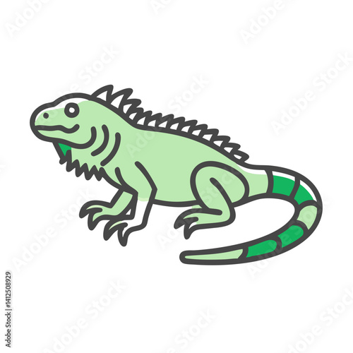 © Xihan, Fototapeta premium Cartoon Green Iguana Illustration Isolated on Black Background