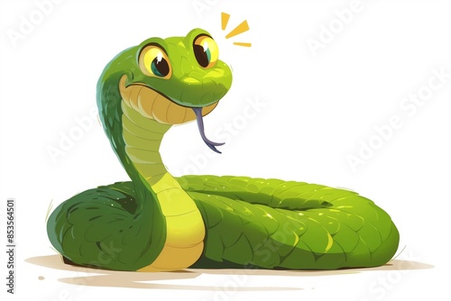 © Katsyarina, Naklejka premium Cartoon green snake isolated on background. New Year 2025. Cute, funny snake. Symbol of the year eastern calendar
