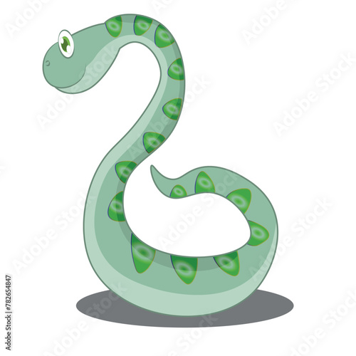 © Fridho, Fototapeta premium Cartoon green snake on white background