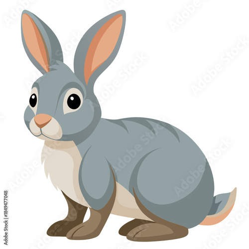 © SUFIA, Obraz premium Cartoon grey rabbit with big eyes and ears on transparent background