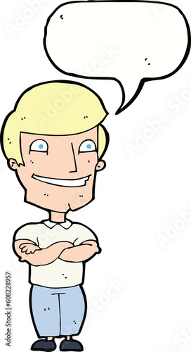 Obraz premium cartoon grinning man with speech bubble
