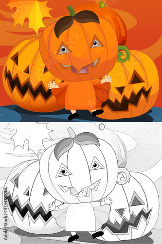 Fototapeta premium Cartoon halloween scene with sketch illustration