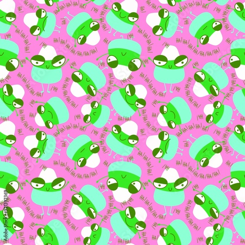 © Tetiana, Obraz premium Cartoon Halloween sugar monsters seamless candy corn pattern