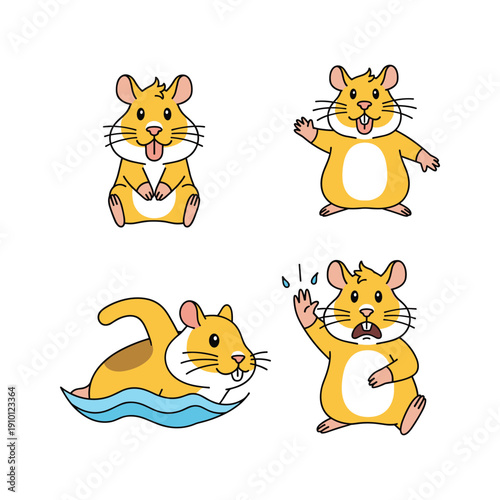 © FarukStock, Obraz premium Cartoon hamster set with different actions and emotions on white background