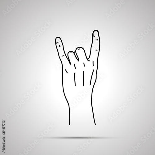 Fototapeta premium Cartoon hand in corna gesture, simple outline icon on gray