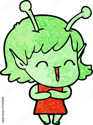Naklejka premium cartoon happy alien girl