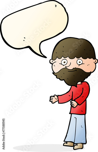 Fototapeta premium cartoon happy bearded man with speech bubble