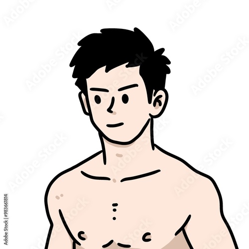 © mansum008, Fototapeta premium cartoon happy boy with chest on white background
