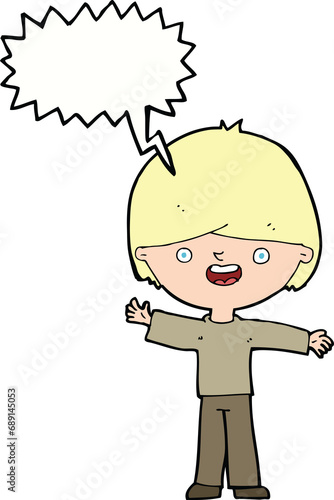 Obraz premium cartoon happy boy with speech bubble
