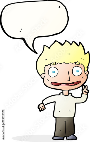 Obraz premium cartoon happy boy with speech bubble